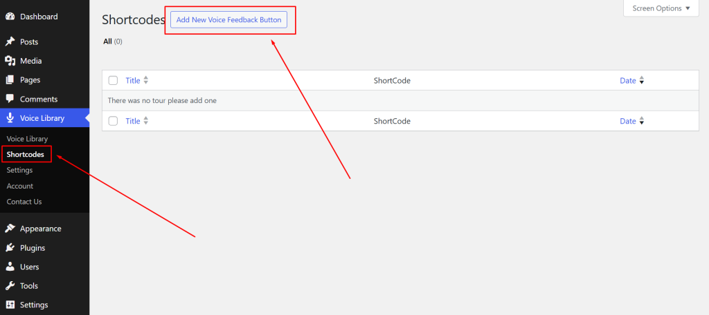 • Click on Voice Library > Shortcodes from the admin menu.